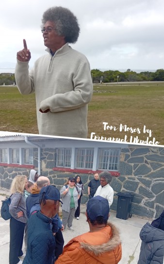 Tom Moses was brought into the island at 25 and he suffered atrocities until the end of the apartheid regime. He is now in his late 70s but very tall with an Afro hair dotted with white strands.