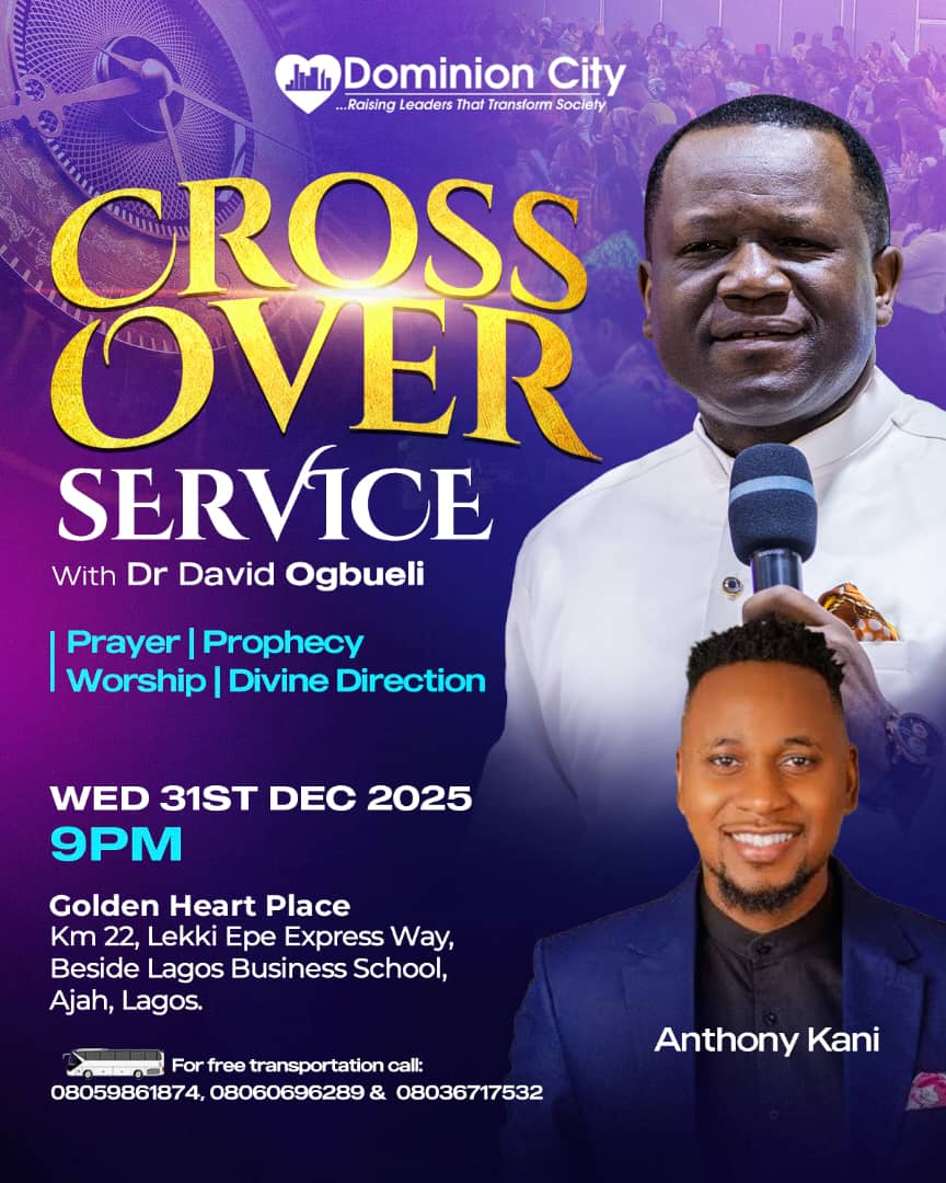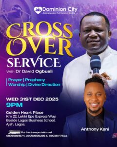 The Crossover Service will be ministered by Dr. David Ogbueli, Founder and President of Dominion City, widely known for his prophetic insight, leadership teachings, and transformational ministry across Africa and beyond.