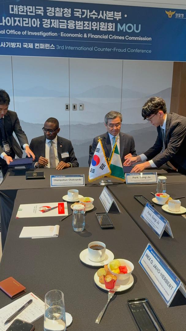 ABUJA, Nigeria – The Economic and Financial Crimes Commission, EFCC and the National Office of Investigation, Korean National Police Agency, KNPA, have signed a Memorandum of Understanding, MoU, on tackling economic and financial crimes and strengthening institutional capacities.
