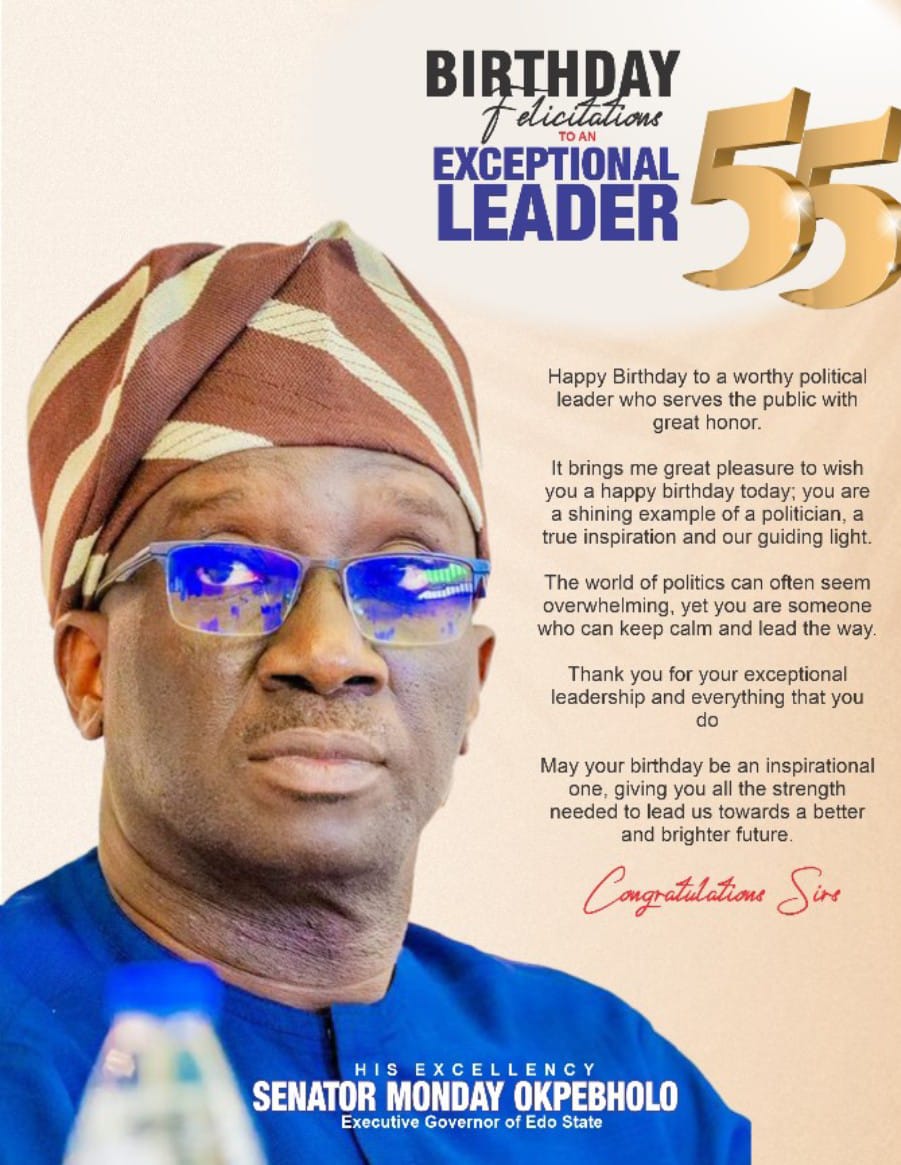 On this August occasion of your birth anniversary, I extend my heartfelt felicitations and good wishes on behalf of my family, friends and good people of Edo State and beyond.