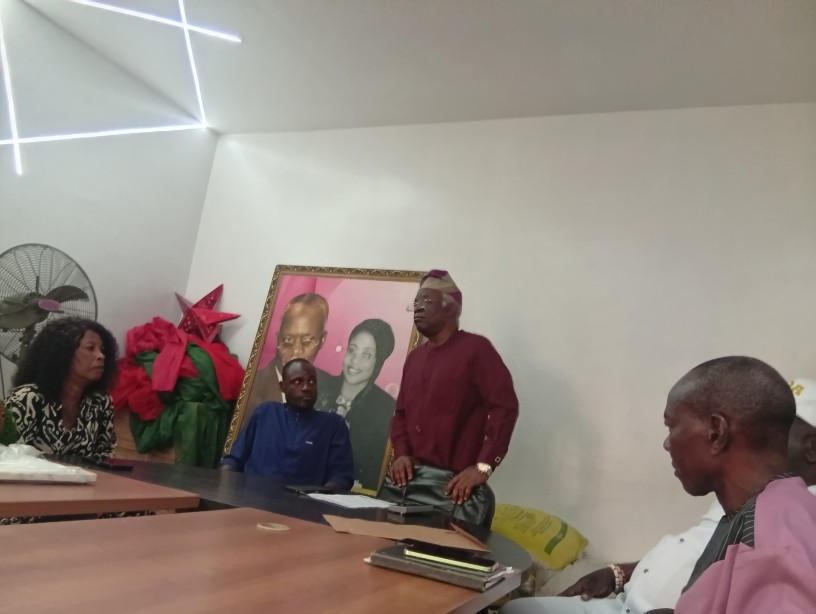 - Dr. Okechukwu Kenneth Nwafor far right with his kinsmen listens to Femi Falana, SAN during the visit