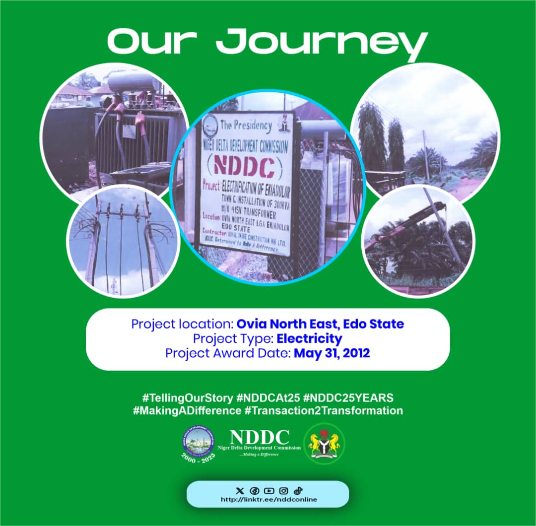 In the past 25 years of existence, the NDDC impacted the lives of people in Ovia North – East Local Government Area of Edo State with the provision of electricity.