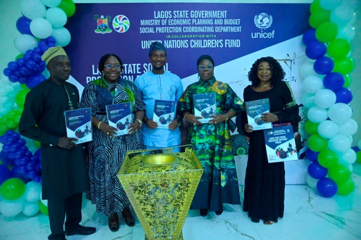 - From left: Director, Social Protection Coordinating Department (SPDC), Mr. Yusuf Olanrewaju; Permanent Secretary, Ministry of Economic Planning and Budget (MEPB), Mrs. Olayinka Ojo; Social Policy Manager, UNICEF, Mr. Muhammad Okorie; immediate past Director of SPCD and the Permanent Secretary, Lagos State Audit Service Commission, Mrs. Oluwakemi Garbaadeen-Adedeji and Barrister Clara Ndive of Clara Ndive & Co. during the launch of the Lagos State Social Protection Report 2025 at the Social Protection Partners’ Forum, organised by MEPB in collaboration with UNICEF, held at the Dover Hotel in Ikeja, on Wednesday, February 4, 2026.
