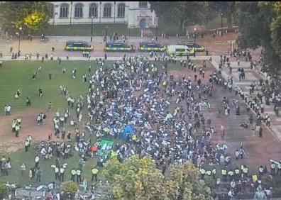 “In carrying out their duties today, our officers have been punched, kicked, spat on and had objects thrown at them by protesters. It is intolerable that those whose job it is to enforce the law and keep people safe – in this case arresting individuals committing offences under the Terrorism Act – should be subject to this level of abuse.