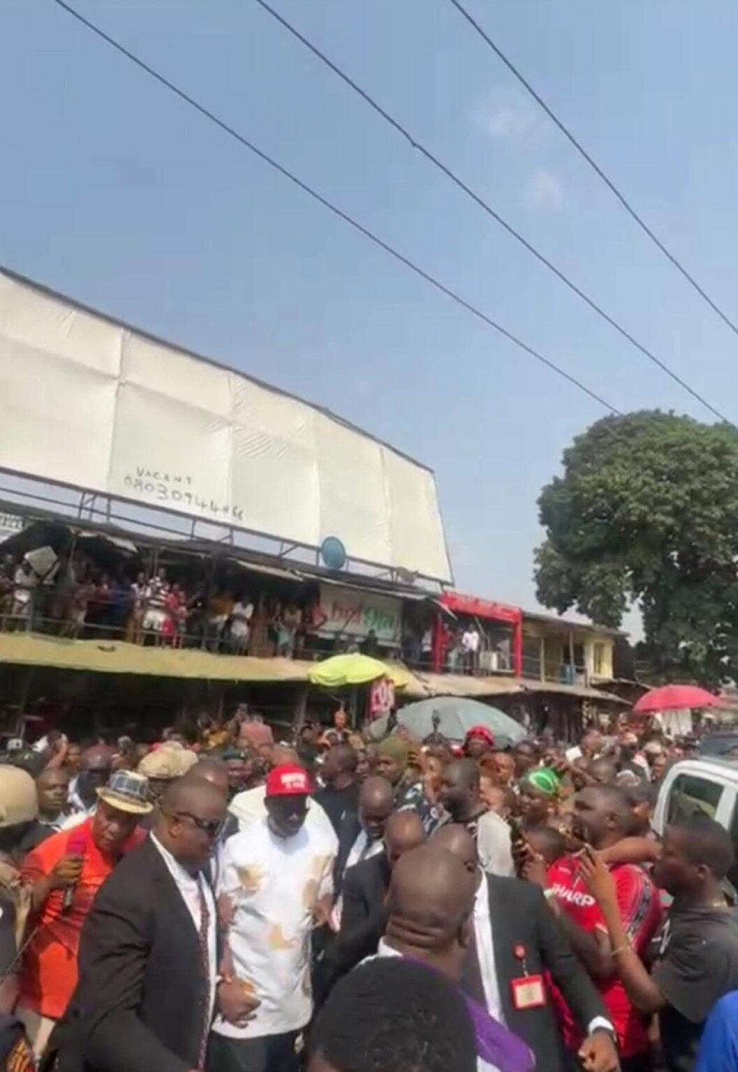 Anambra Governor, Professor Charles Soludo and his team with traders at the Onitsha Main Market earlier today