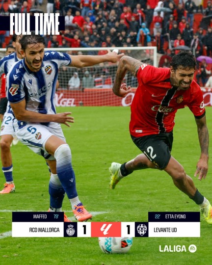 ​PALMA DE MALLORCA, Spain — In a tense, highly contested affair between two clubs battling to solidify their position in the Spanish top flight, RCD Mallorca and Levante UD played to a 1-1 draw at the Estadi Mallorca Son Moix on Sunday.